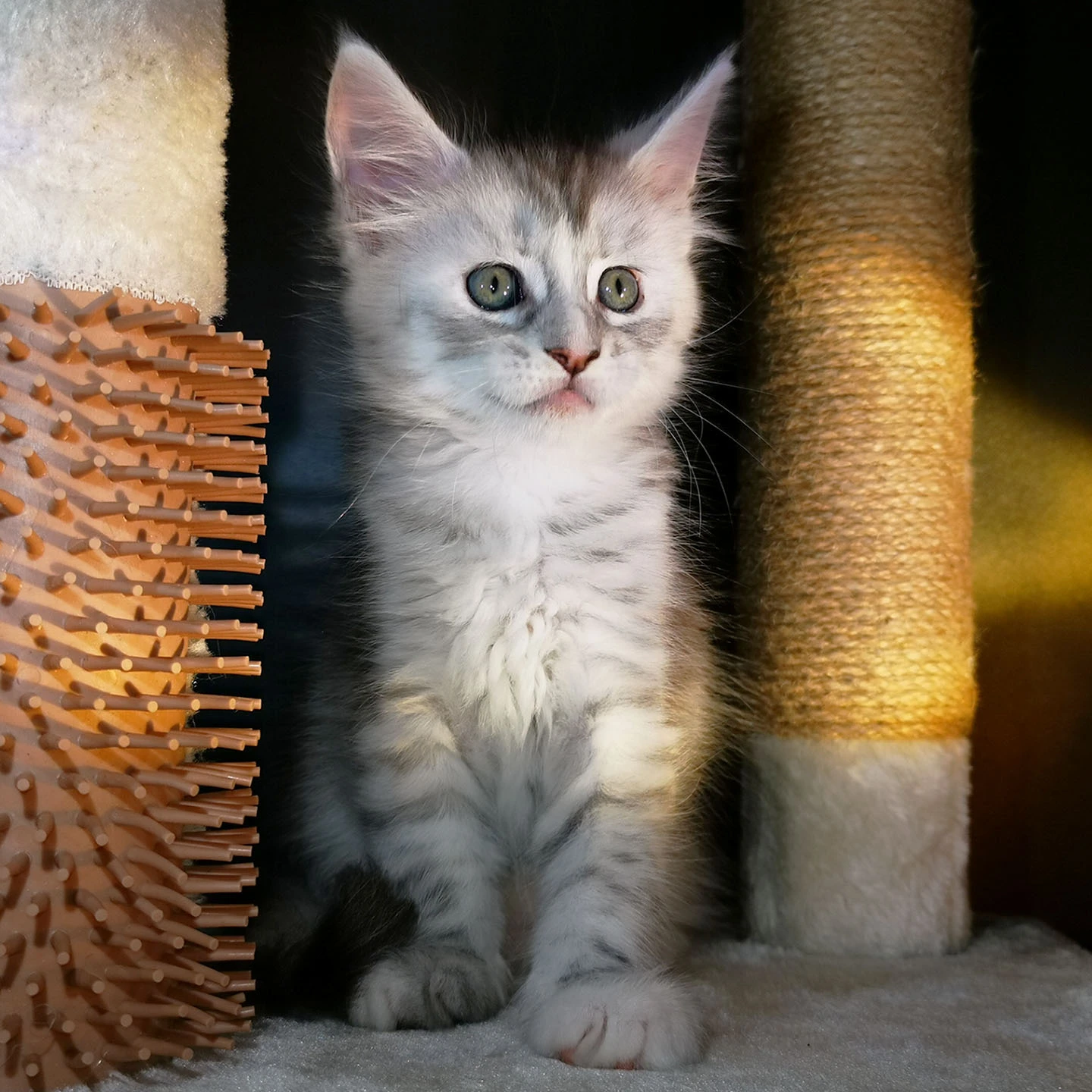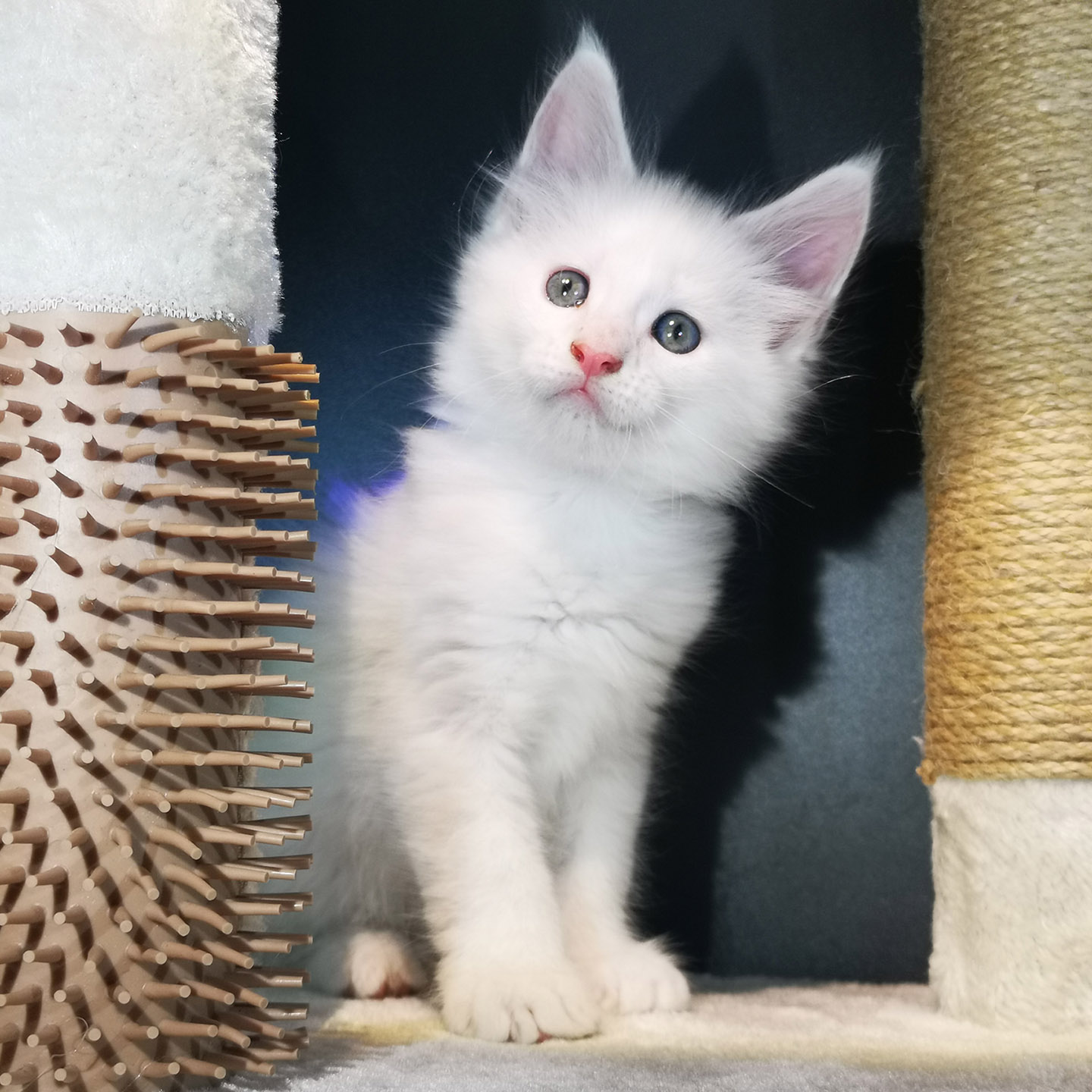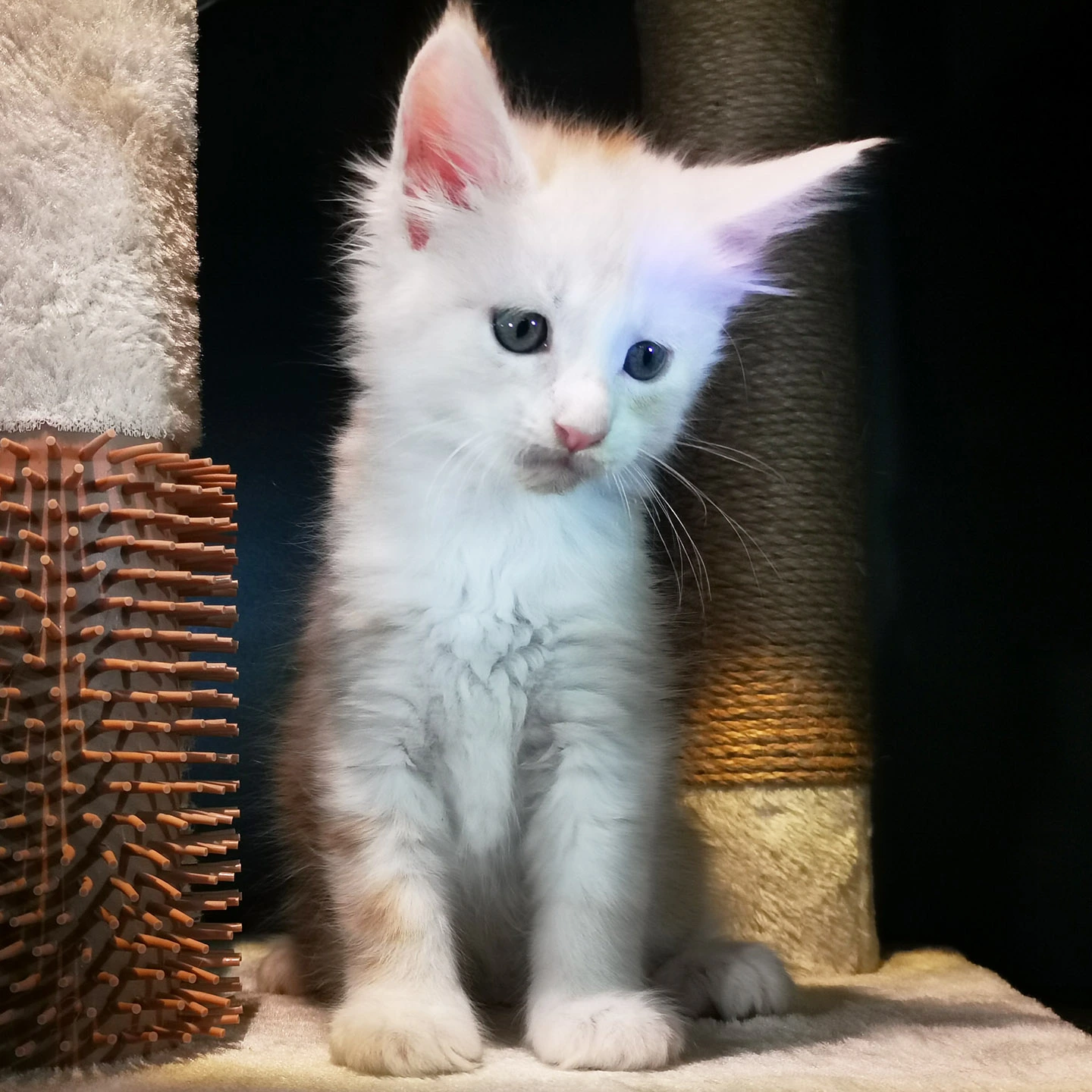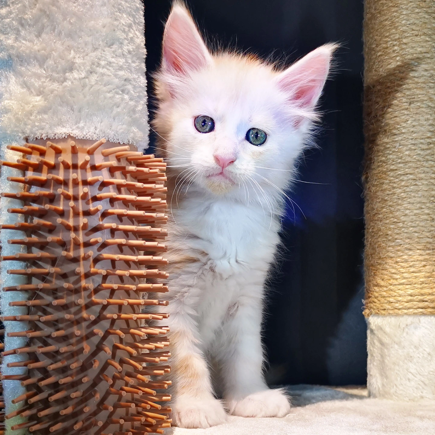 Lily van Pure DenMark is een schitterende Maine Coon met een zachte crèmekleurige vacht en opvallende koperkleurige ogen. Haar uitstraling is net zo bijzonder als haar karakter: kalm, zachtaardig en liefdevol.