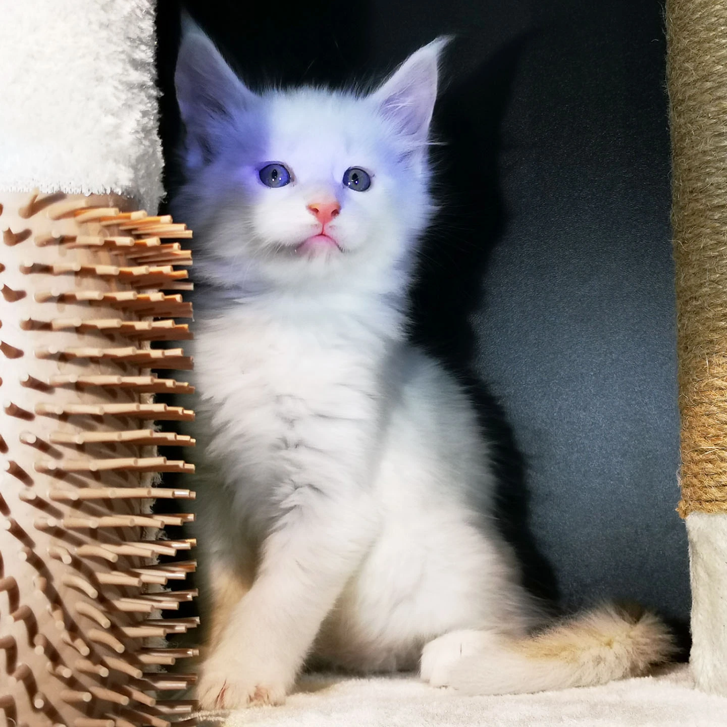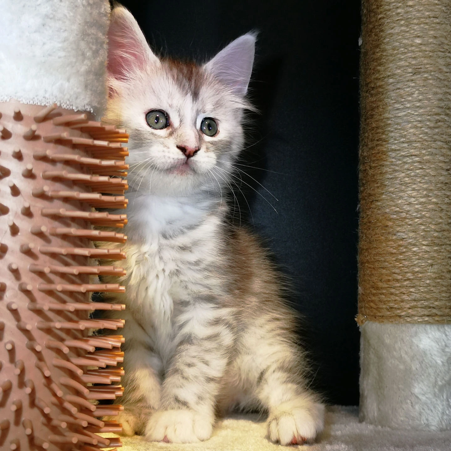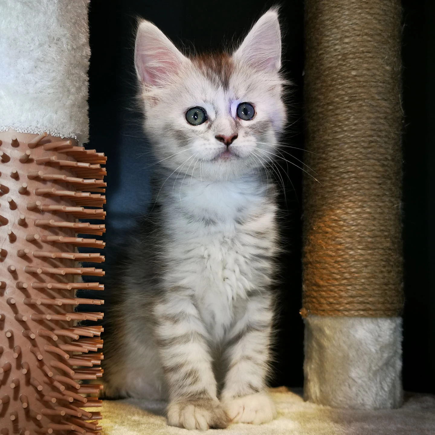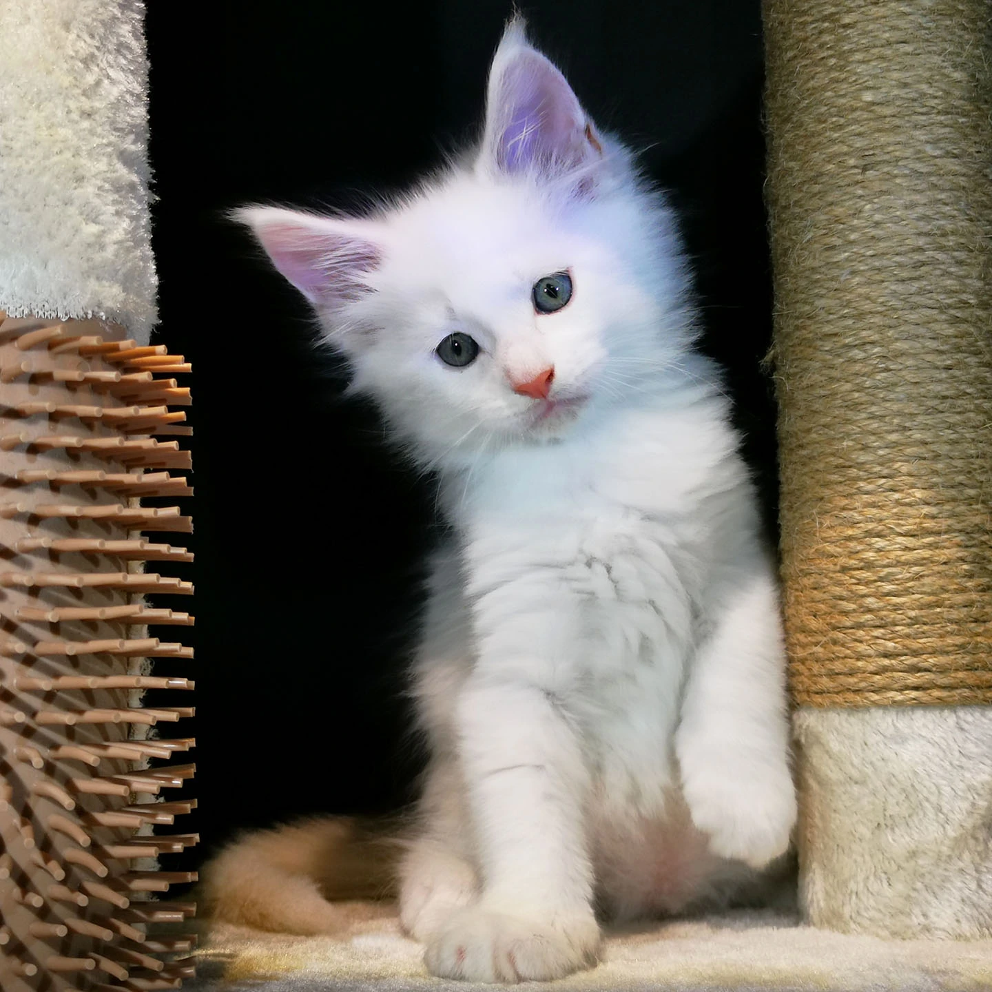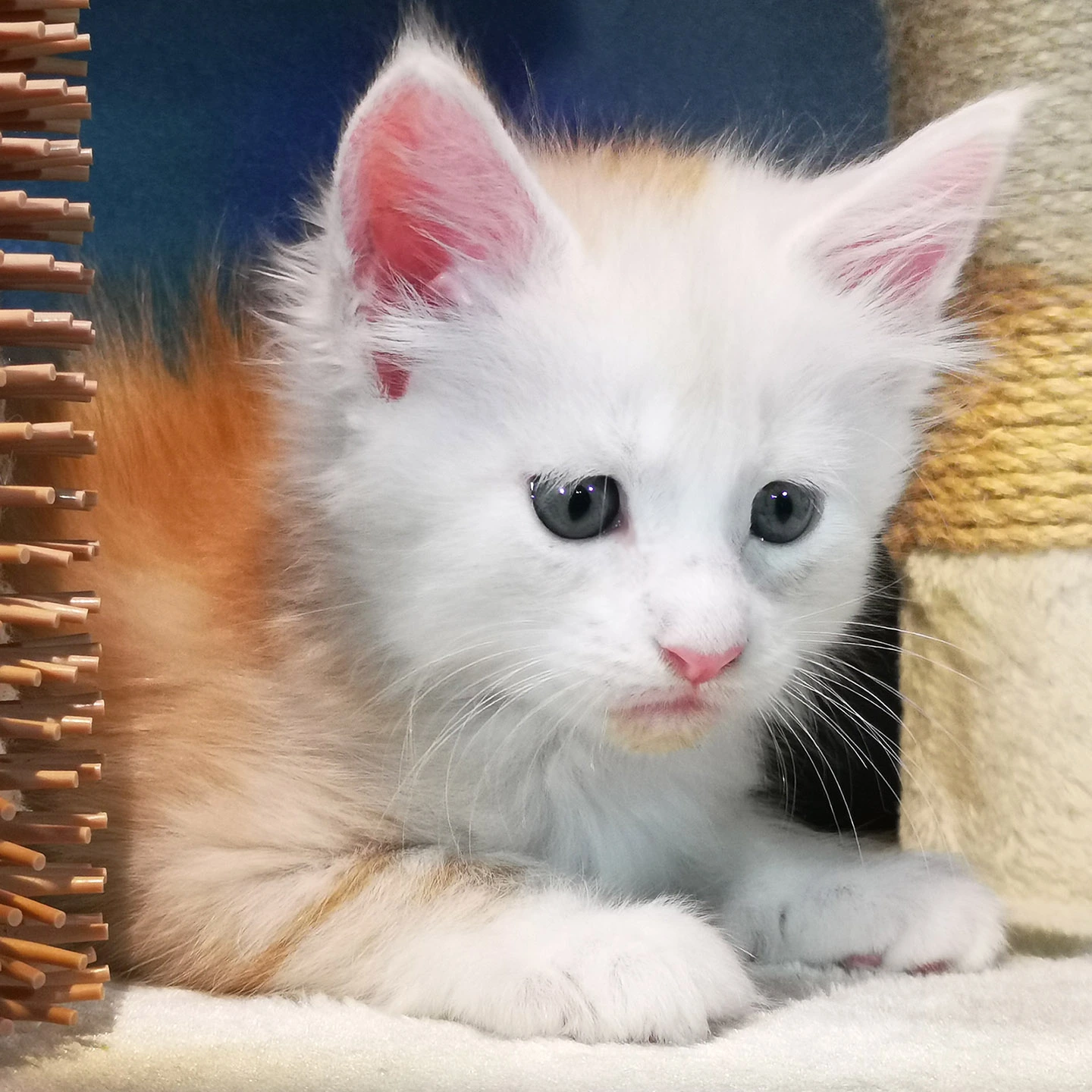Lily van Pure DenMark is een schitterende Maine Coon met een zachte crèmekleurige vacht en opvallende koperkleurige ogen. Haar uitstraling is net zo bijzonder als haar karakter: kalm, zachtaardig en liefdevol.
