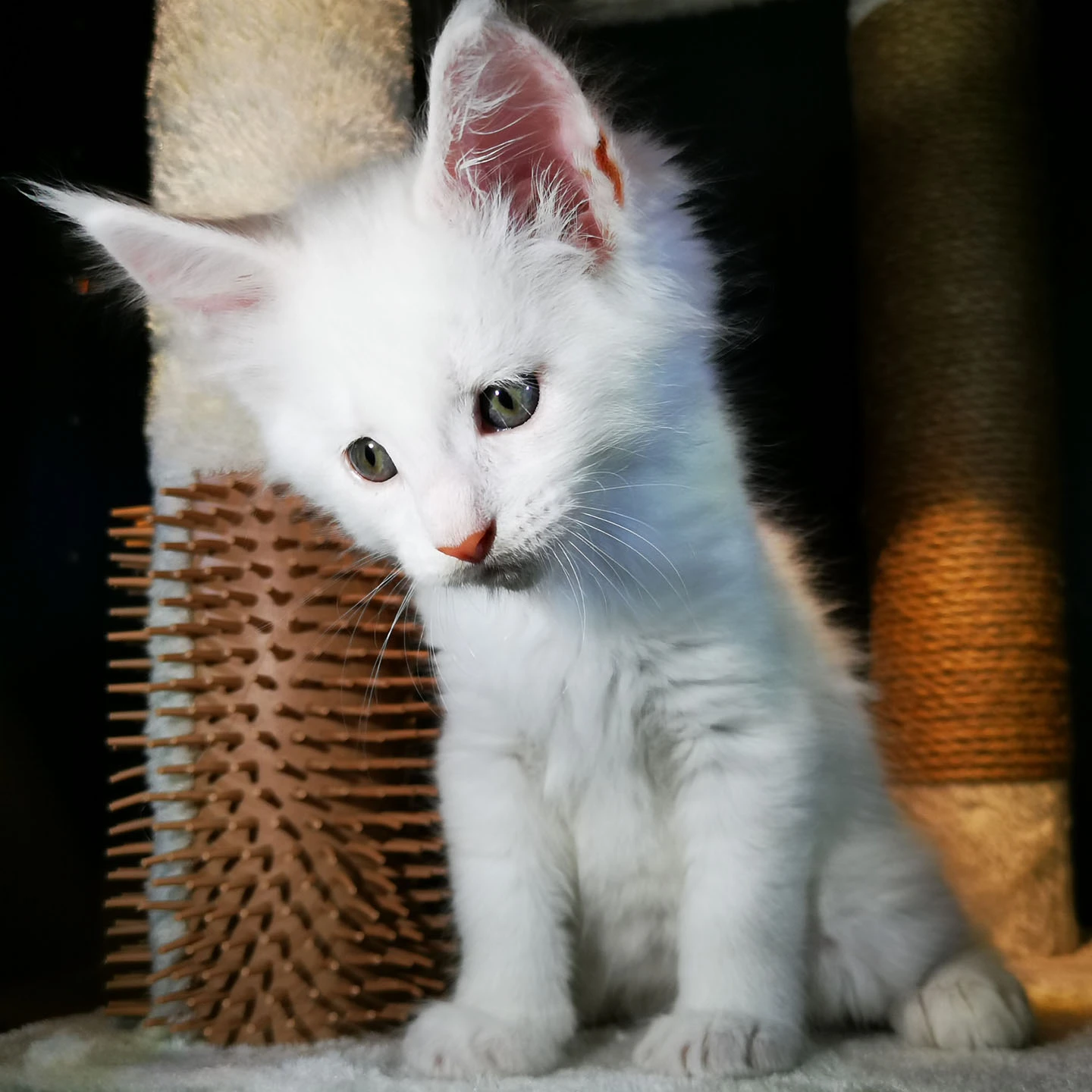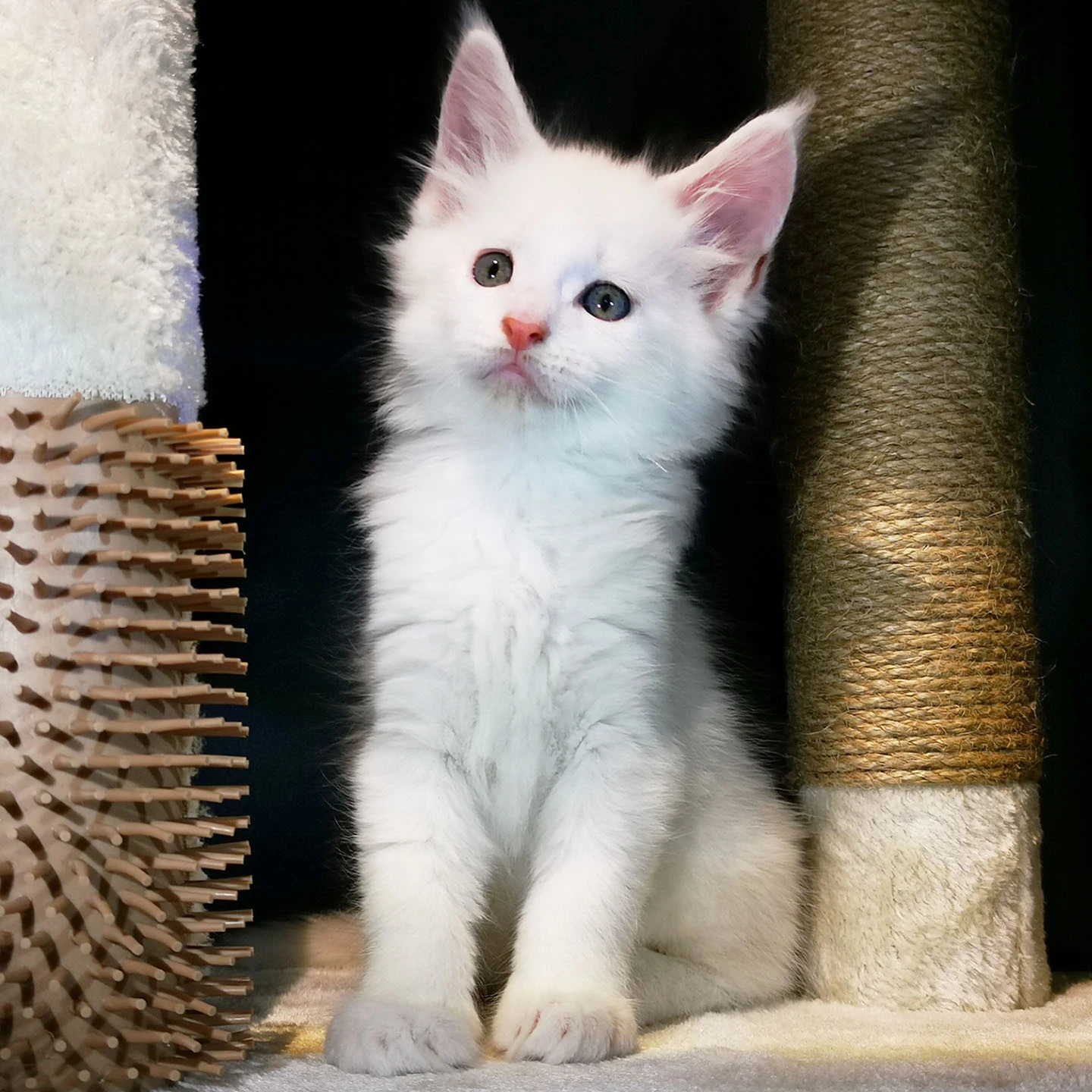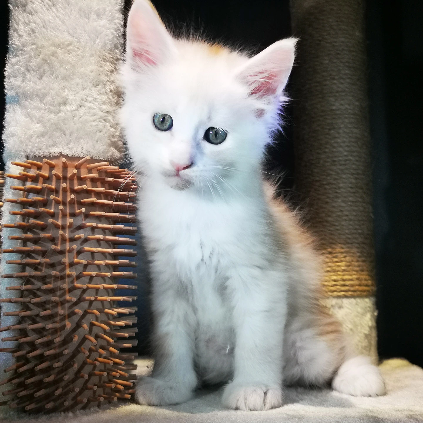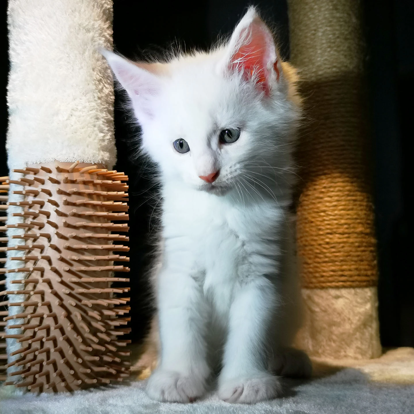 Lily van Pure DenMark is een schitterende Maine Coon met een zachte crèmekleurige vacht en opvallende koperkleurige ogen. Haar uitstraling is net zo bijzonder als haar karakter: kalm, zachtaardig en liefdevol.